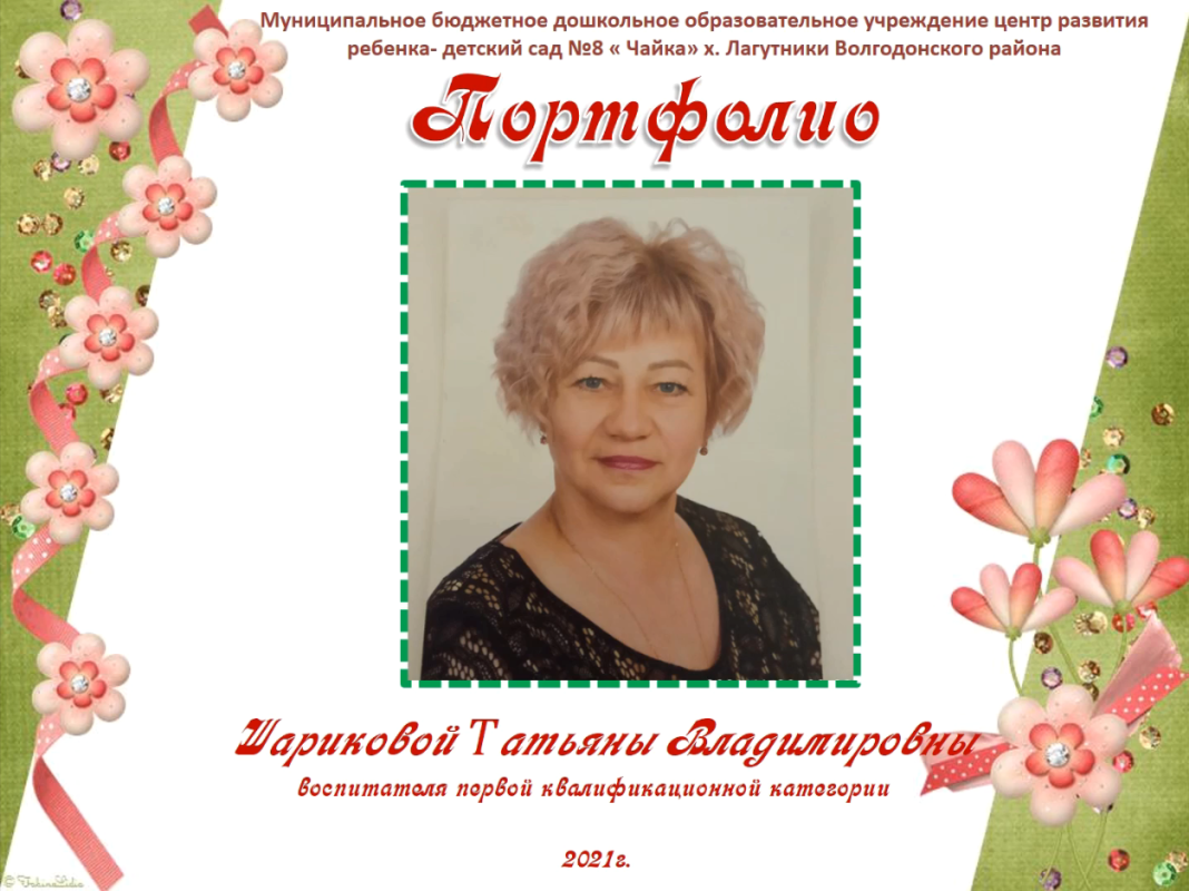За время работы в детском саду я многому научилась. В своем электронном портфолио размещаю материалы, которые были мною наработаны в результате изучения использованной мною литературы, использованные в моей практике, а также из опыта общения с моими дорогими с коллегами и детьми. Я буду рада ,если кто то воспользуется моими материалами, если кому то что то здесь пригодиться для работы .Хочу пожелать всем своим коллегам успехов в нашей работе! Успех работы, как известно, зависит от эффективности труда каждого, кто причастен к делу воспитания. "Воспитатель сам должен быть воспитан" - это главная заповедь для каждого педагога. "....как прошло детство, кто вёл ребёнка за руки в детские годы, что вошло в разум и сердце из окружающего мира - от этого в решающей степени зависит, каким человеком станет сегодняшний малыш".