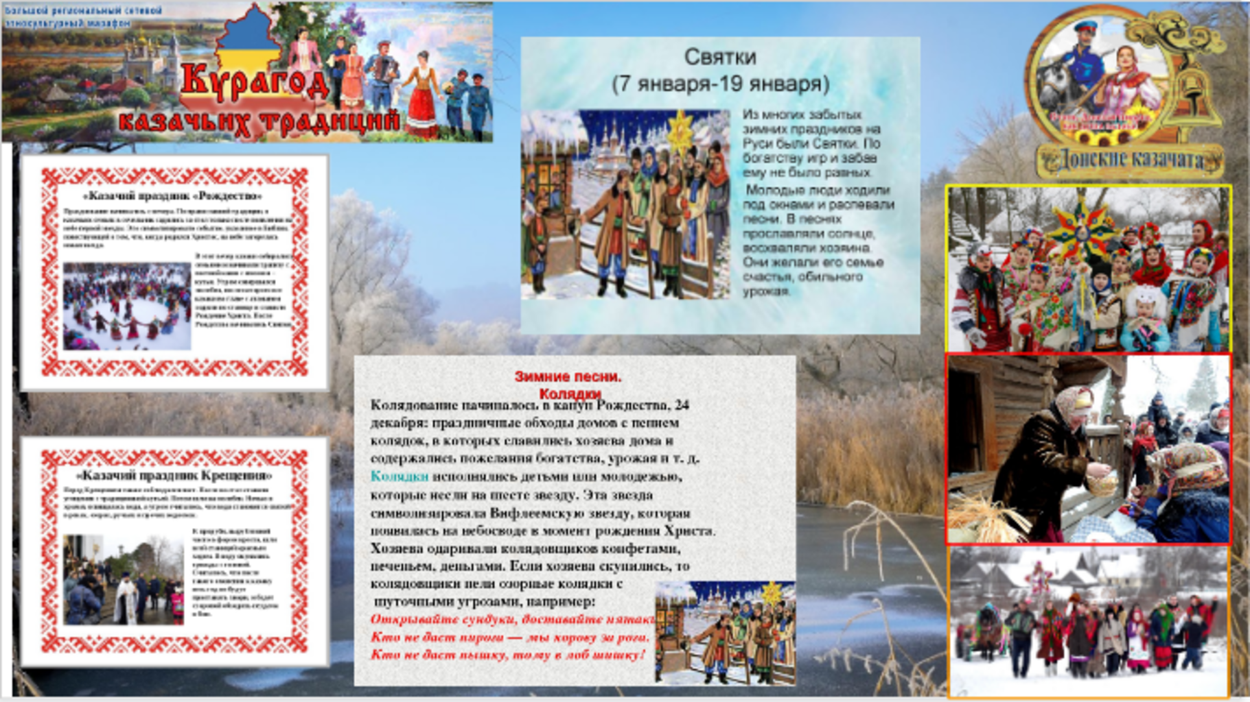 МБДОУ ЦРР - детский сад №8 "Чайка" принимает участие в сетевом марафоне "Курагод казачьих традиций" и представляет мероприятия посвященные празникам которые были популярны среди казаков. Первый праздни - Святки