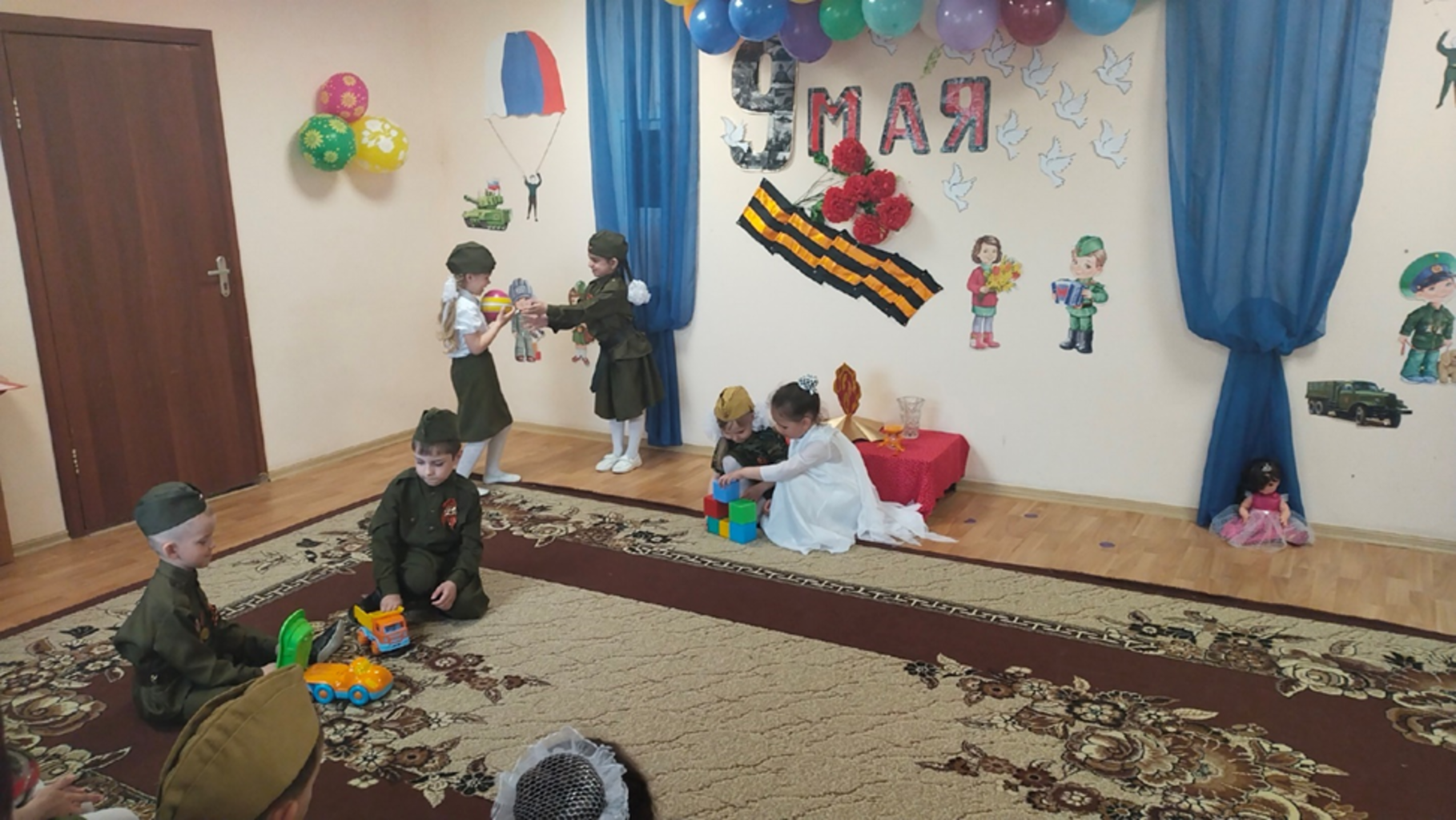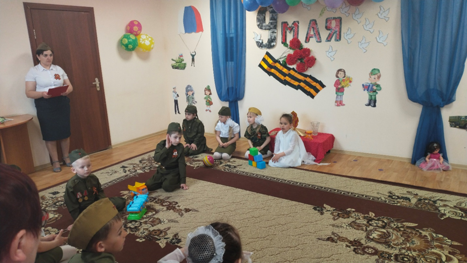 - Совместная и индивидуальная деятельность педагога с детьми, по теме «9 мая – День Победы!» Проведены занятия и беседы, показаны хронологические материалы о Великой Отечественной Войне.