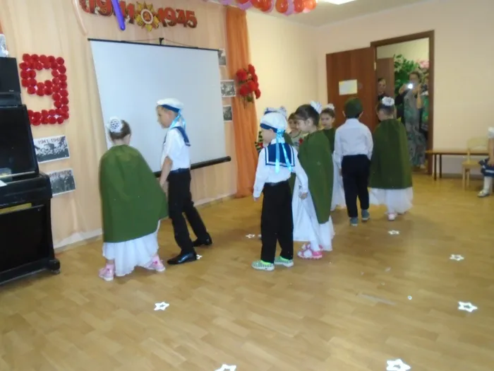 В детском саду ежегодно проводится празднование 9 мая Дня Победы. В нем участвуют воспитанники старшего дошкольного возраста. Этот год не стал исключением. Под руководством музыкального руководителя Тарановой С.Л. и воспитателей Радченко И.В. и Серко В.А. Воспитателем старшей дошкольной группы был подготовлен и проведен утренник, посвященный Дню Победы в Великой Отечественной войне. В торжественной обстановке дети читали стихи, пели песни , танцевали, звучала музыка военных лет. Дети исполнили для зрителей красивые танцы: " Журавли", " Катюша", песню «Прадедушка». По традиции все участники праздника почтили память погибших минутой молчания.