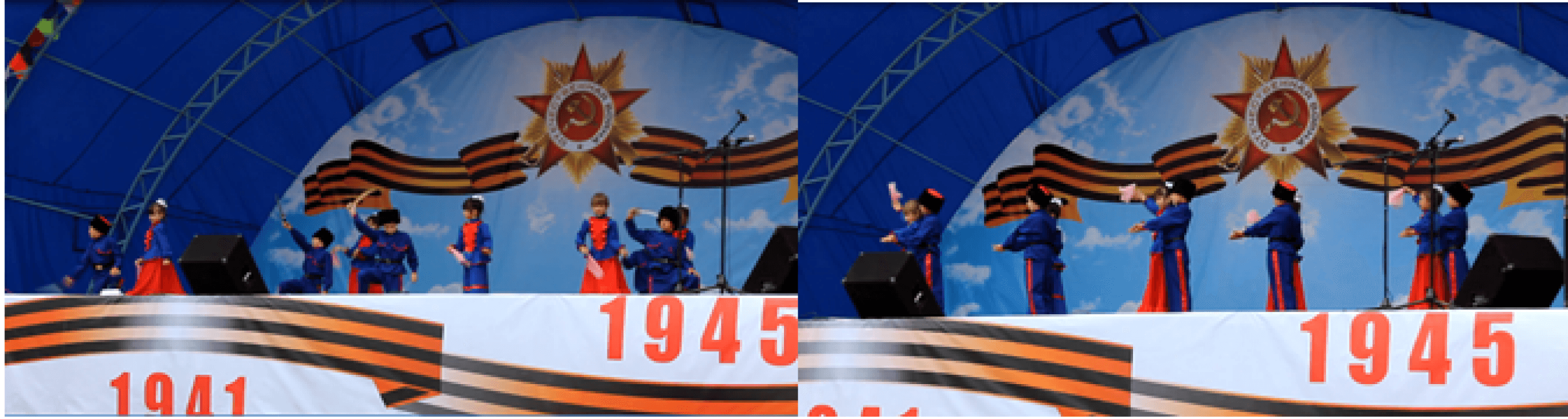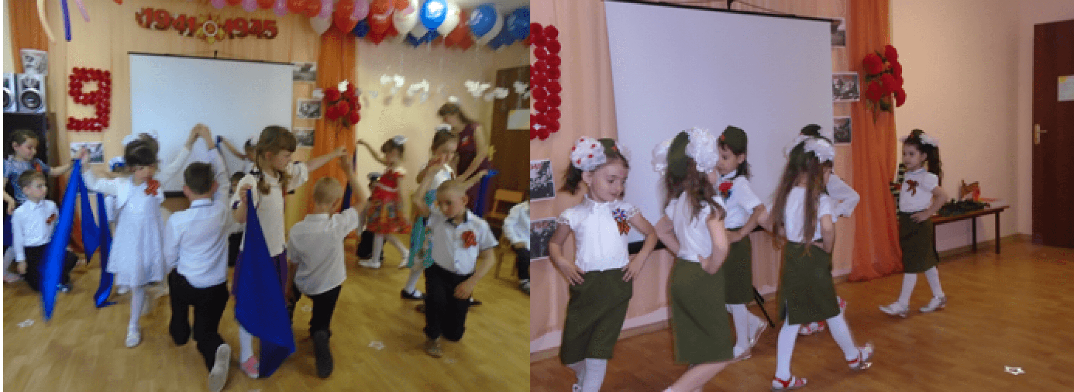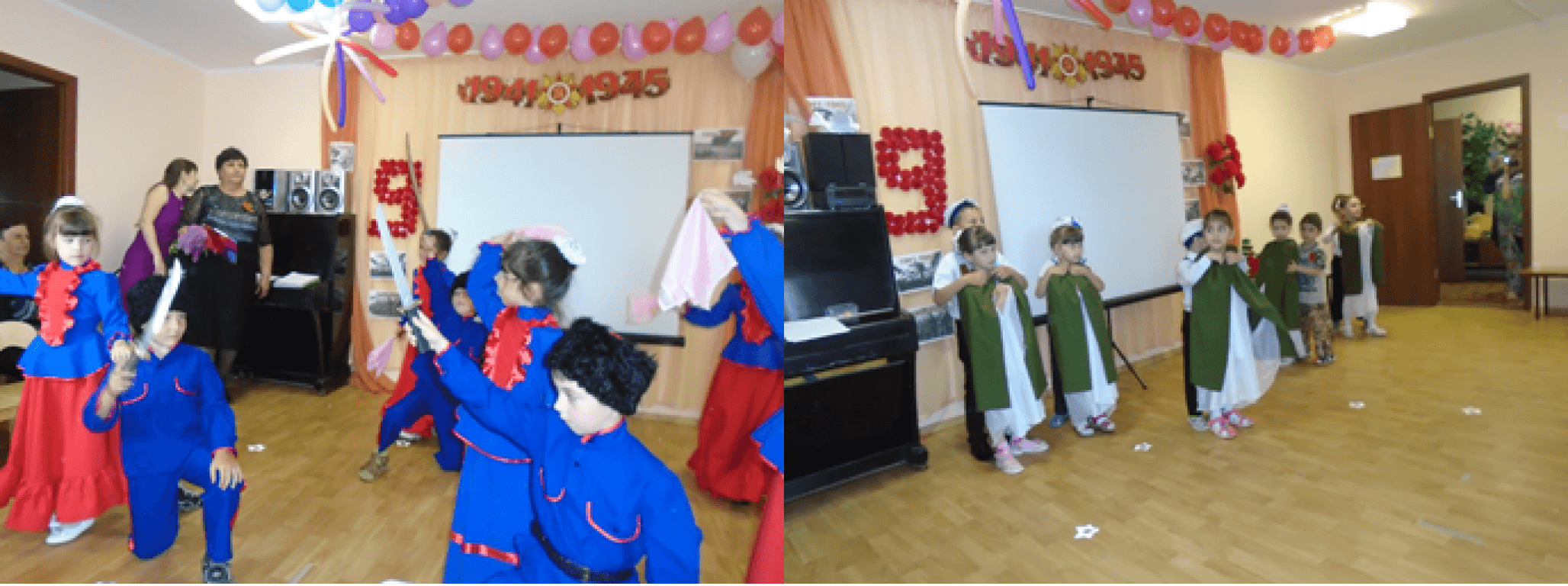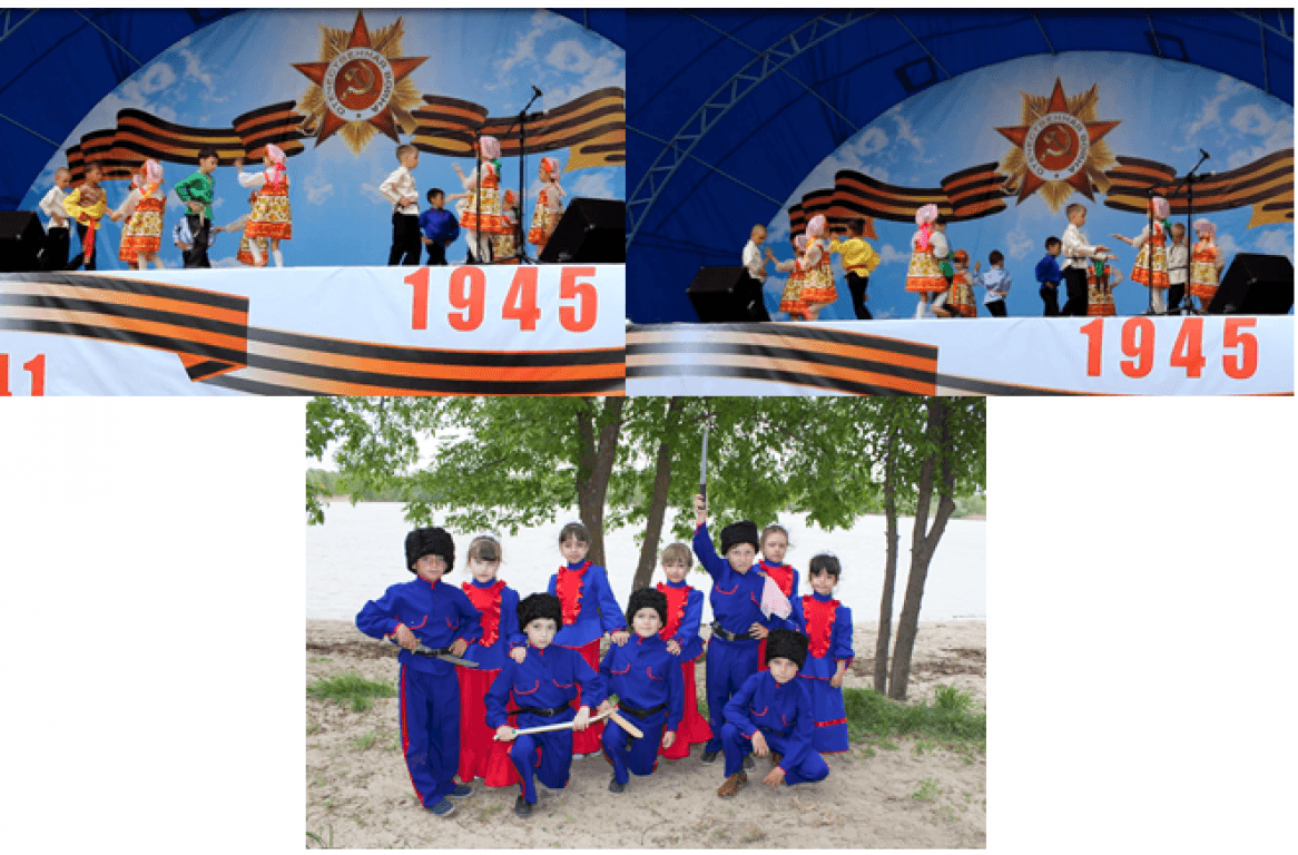 Дети подготовительной группы участвовали в районном мероприятии, посвященном Дню Победы. Выступили на фестивальной поляне в станице Романовская и исполнили два танца: веселую «Кадриль» и задорный казачий танец «При лужке, при лужке…»»