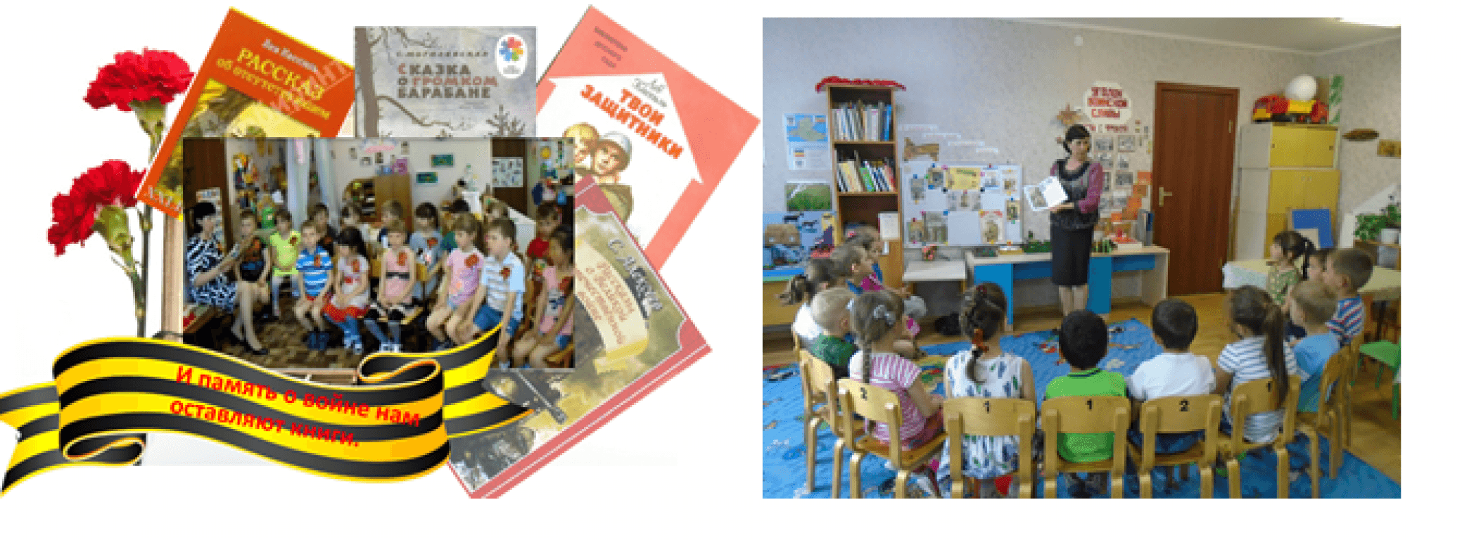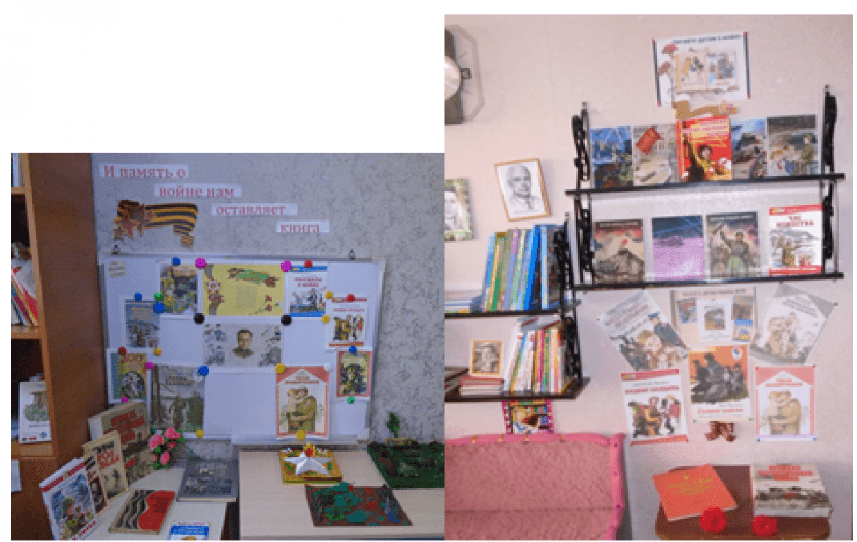 Воспитатели совместно с родителями оформили выставки детской художественной литературы о войне, о выживании в оккупации и концлагерях, о голодном и страшном детстве. Тема выставок: «В книжной памяти мгновения войны»; «И память о войне нам оставляет книга».