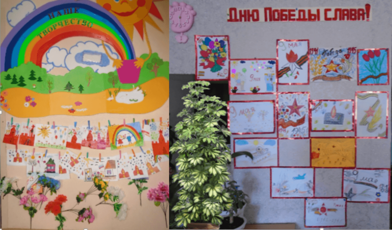 Дети детского сада участвовали в муниципальном Интернет-конкурсе «Дети рисуют Победу», посвященном 73-й годовщине со Дня Победы в Великой Отечественной войне. Рисунки наших детей - победителей конкурса Шабановой Алины и Донецкого Данила украсили баннер к 9 мая в ст. Романовская.