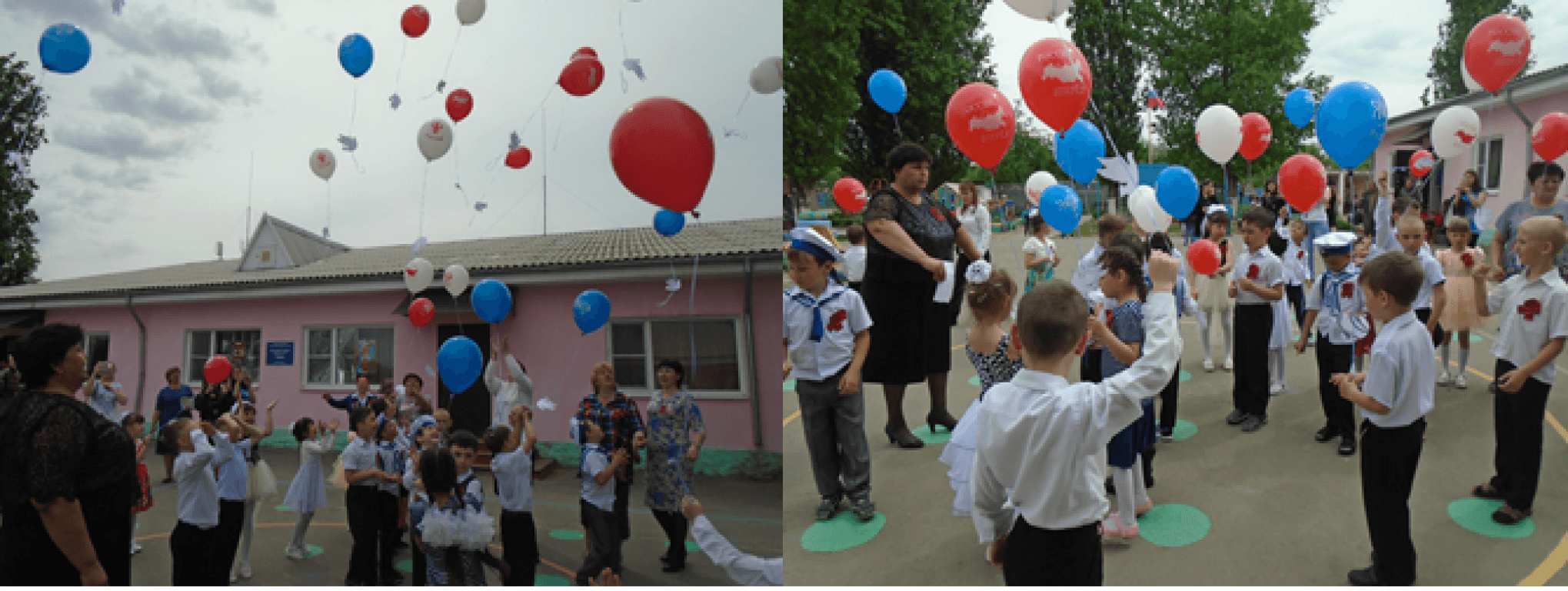В актовом зале, украшенном праздничной символикой, воздушными шарами и букетами цветов, прошли торжественные утренники в старшей и подготовительной группах.
