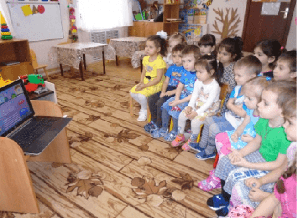 В младшей группе дети смотрели сказку «Непослушный пешеход» по стихотворению Ирины Гуревой целью просмотра было формирование представлений о важности выполнения правил безопасности на дороге.
