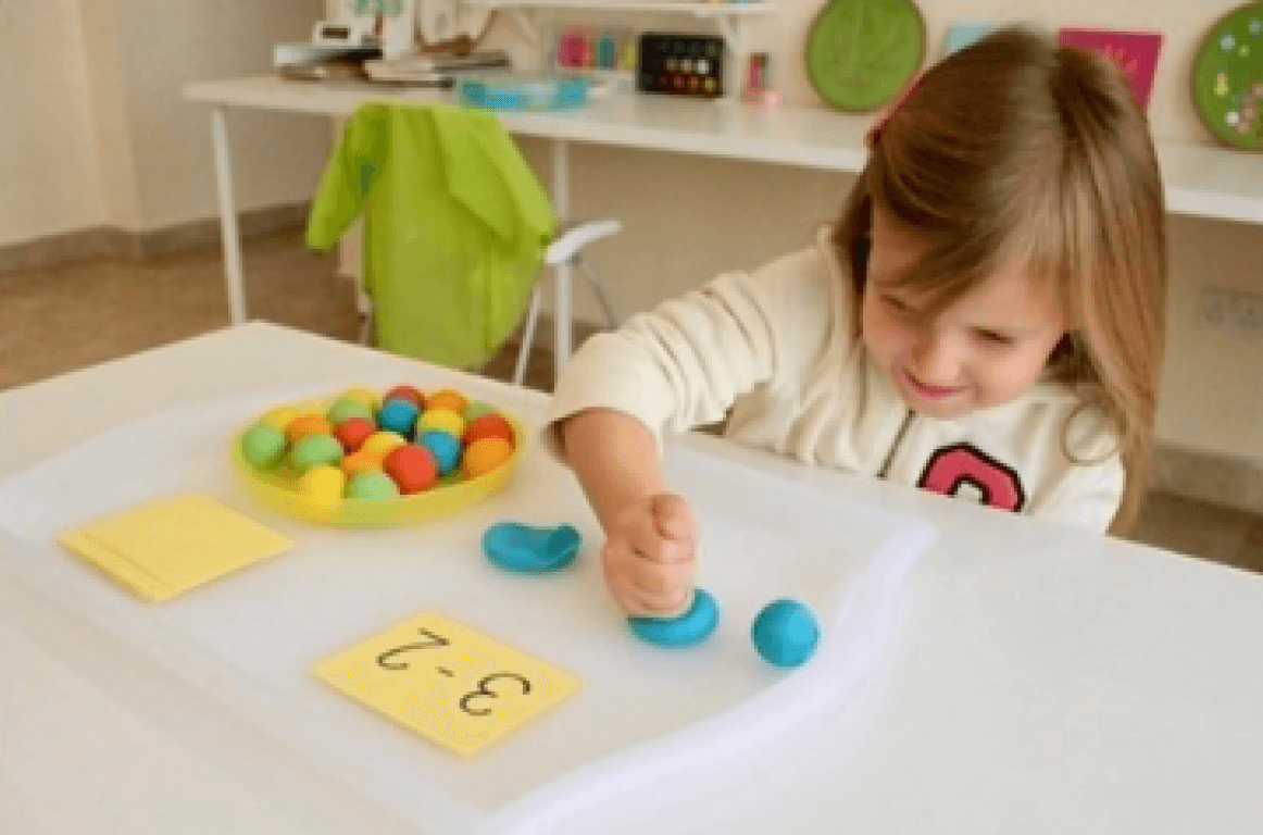 4) Объясните ребенку: Мы испекли 5 колобков (пересчитайте вместе колобки перед куклой). Кукла съела 1 (надавите на колобок пальцем, меняя форму). Сколько колобков осталось?
